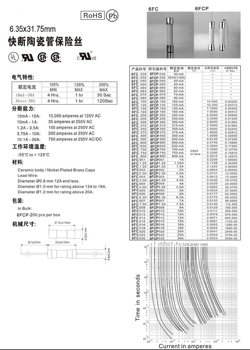 6.35X31.75mm陶瓷管快斷保險絲