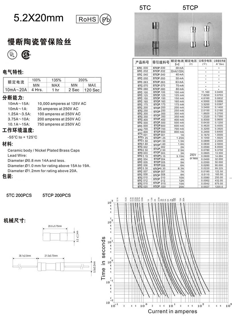 5x20mm陶瓷慢斷保險(xiǎn)絲